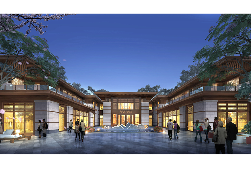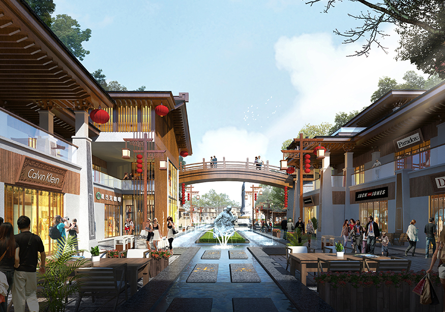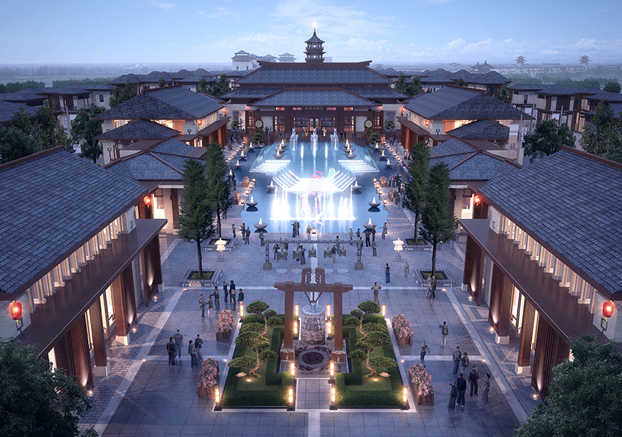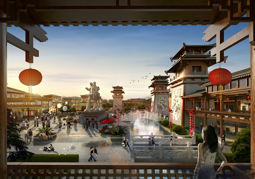 ? ? 文化商業街的設計頗具匠心,從入口處開始,至文化商業街出口處結束,整個用關羽輝煌起伏的一生為時間線進行貫穿。如果說整條街區是關羽在世生而仁、仁而勇、勇而義、義而忠的再現,那么從街區的出口處就是關羽侯而王、王而帝、帝而圣、圣而天文化升華的開始。讓體驗者通過關公精神,體驗現代旅游綜合商業區,建設一個集餐飲休閑、旅游度假為一體的傳統古典園林式的商業綜合體。