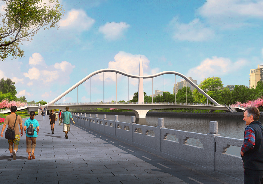 雄鷹展翅的墩梁下部造型,配以上部張力挺拔的弓弩,結(jié)構(gòu)造型新穎獨特,內(nèi)涵豐富,將蒙古族的文化元素融入其中;另外江南文化的元素可以在橋梁欄桿上加以體現(xiàn)。