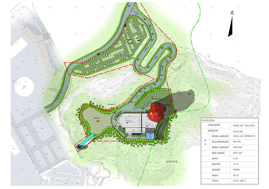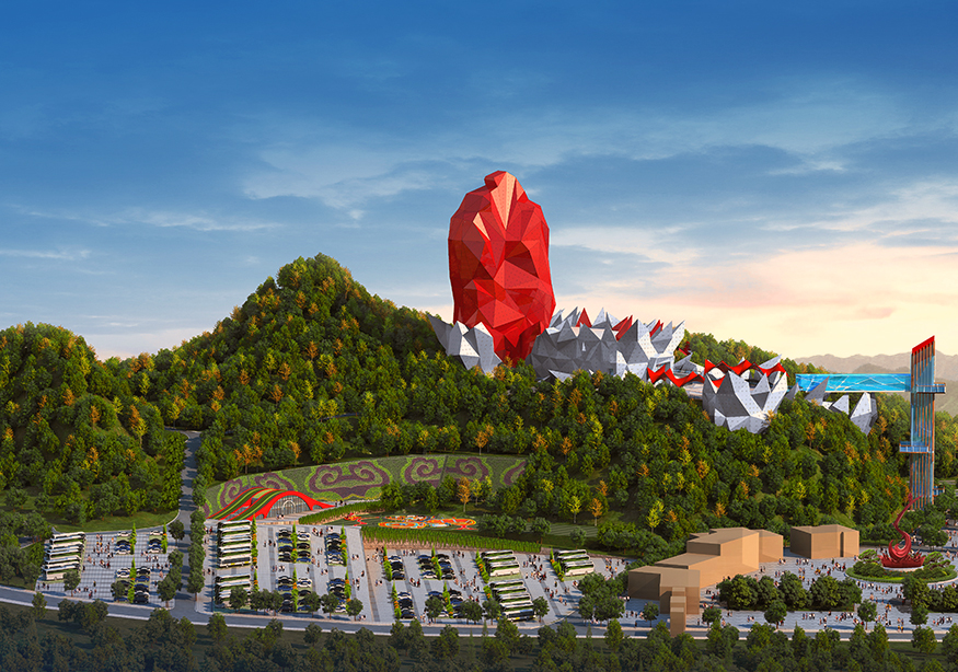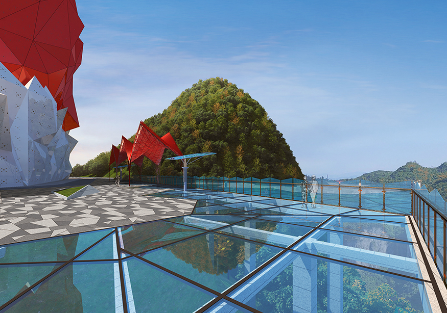 項目選址環境清雅舒適,設施齊全。放眼望去,酒店恍若一顆碩大的朱砂紅寶石橫空出世,鑲嵌在山巒之巔,高聳入云,直取天際,十分驚艷。在懸崖棧道盡頭有升降電梯直達酒店,為來此旅游的游客提供了更具文化品位與更貼心的度假空間。