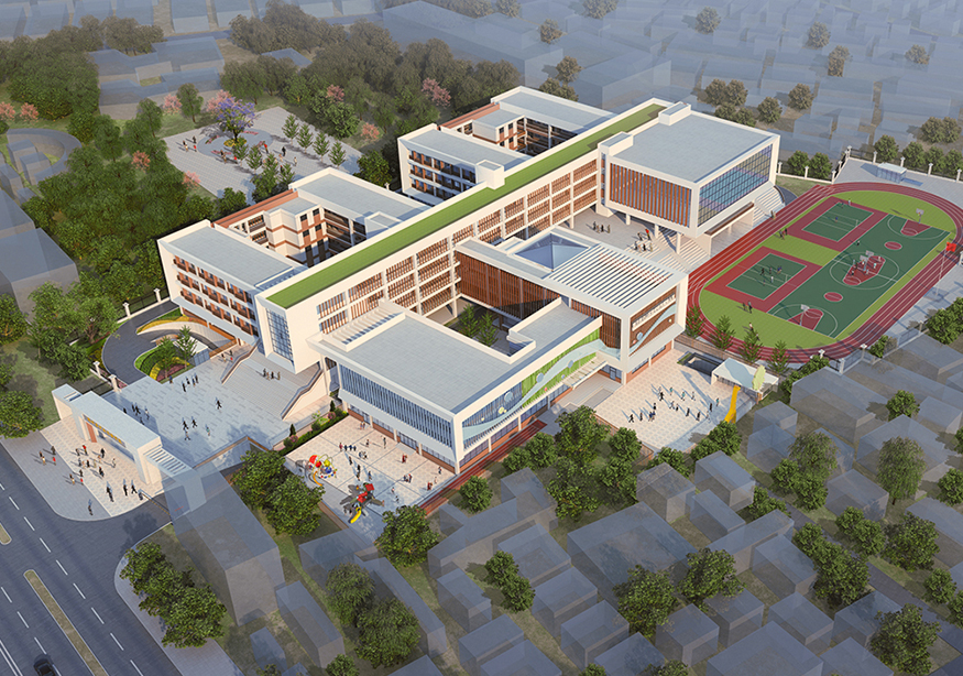 項目位于潮州市饒平縣黃岡鎮,該項目北側臨黃岡大道,東側臨中山公園,區域環境優美。項目規劃用地面積17681.79㎡,規劃總建筑面積28908.05㎡。其中小學建筑面積13335.05㎡,包括綜合樓、教學樓、藝體樓、連廊及其他建筑,附屬幼兒園教學綜合樓建筑面積3656.32㎡,門衛及其它建筑面積 31.4㎡ , 地下室建筑面積11885.28㎡。另外場地內配建區內道路、廣場、小學操場及幼兒園室外活動場地等,并配建地下車庫、其它配套工程及教學設備設施。